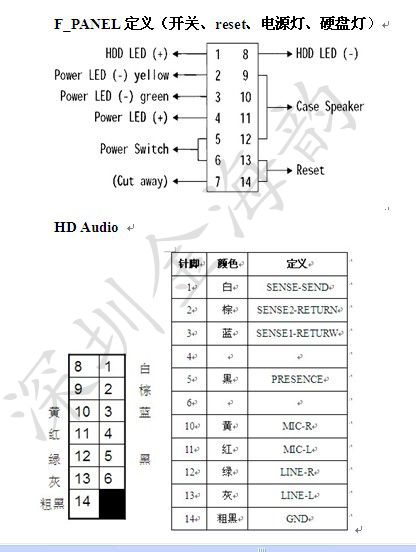 一、联想主板电源开关、重启、硬盘灯、电源灯接线定义。