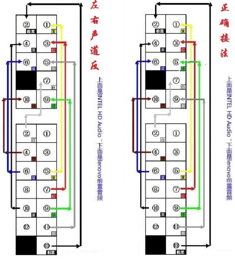 现市场上各种机箱的前置音频面板接线大概分为4种:标准7线接口、简化7线接口、5 线接口、4线接口。对于5线、4线接口的面板,由于制造不符合标准,即使连接以后也不能组成正常的回路,后置无法正常发声的;对于这种面板的接法,由于无法实现前后置音频都能正常发声,这里就不说了。