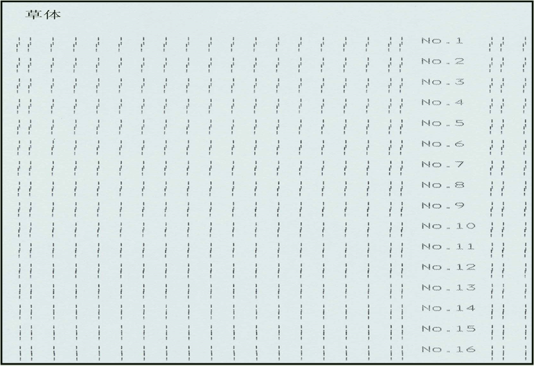 1.1.1 选择校准图样的编号:从“草体模式下的校准图样”中,根据打印效果找到竖线最直的图型。例如:可看出NO.14打印效果较好。