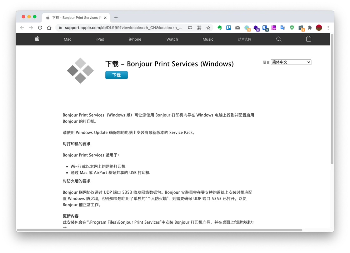 我们需要在 Windows 上安装 Bonjour Print Services (Windows ) https://support.apple.com/zh-cn/106380
