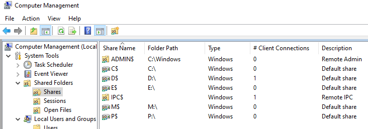1、打开计算机管理,默认共享C盘是开启的,如下图